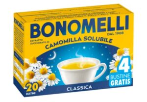 Bonomelli Camomilla Solubile con Melatonina e Magnesio 16 Bustine, Contro Stanchezza e Affaticamento, Infuso Rilassante, Senza Zucchero (72g)