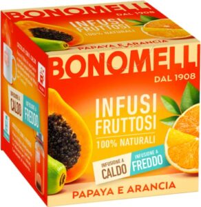 Bonomelli Infusi Fruttosi, Papaya e Arancia, Confezione da 12 Filtri, Gusto Esotico e Fresco, Infusione a Caldo e a Freddo, Ingredienti 100% Naturali (24g)