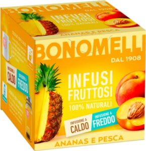 Bonomelli Infusi Fruttosi, Ananas e Pesca, Confezione da 12 Filtri, Gusto Dolce e Vellutato, Infusione a Caldo e a Freddo, Ingredienti 100% Naturali (24g)