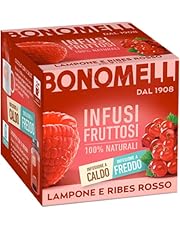 Bonomelli - Infusi Fruttosi, Lampone e Ribes Rosso, Confezione da 12 filtri, Gusto Rinfrescante e Lievemente Acidulo, Infusione a Caldo e a Freddo, Ingredienti 100% Naturali (24g)