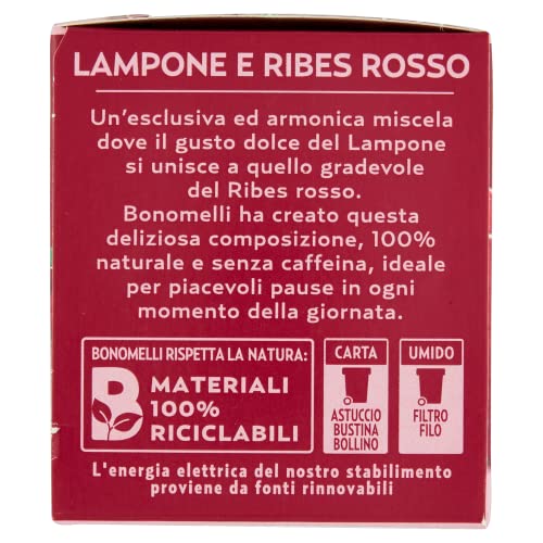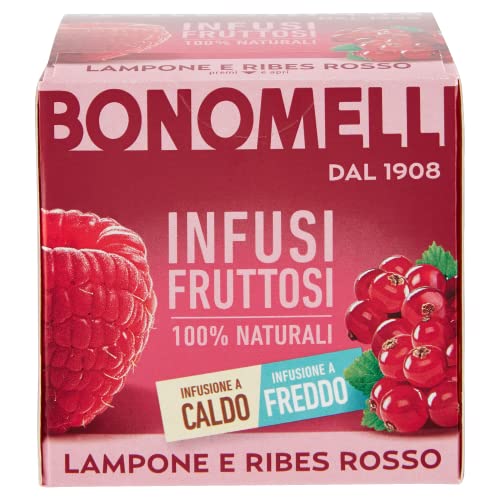 Bonomelli – Infusi Fruttosi, Lampone e Ribes Rosso, Confezione da 12 filtri, Gusto Rinfrescante e Lievemente Acidulo, Infusione a Caldo e a Freddo, Ingredienti 100% Naturali (24g)