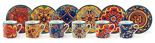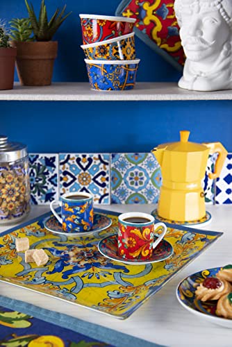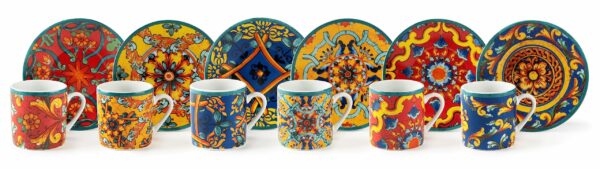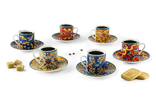 Excelsa , Porcellana, Set 6 tazzine da caffè Trinacria con piattino, multicolore