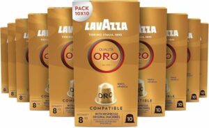 Lavazza, Qualità Oro, 100 Capsule in Alluminio, Note Fruttate e Floreali, 100% Arabica, Intensità 8/13, Tostatura Chiara, 10 Confezioni da 10 Capsule
