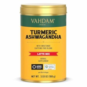 VAHDAM Golden Milk Latte in Polvere Curcuma & Ashwagandha | 100 g–40 Tazze | Senza Caffeina, Senza Zuccheri Aggiunti | Prep…