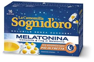 Camomilla Sogni d'oro solubile con melatonina, 16 Filtri, senza zuccheri e glutine, immediatamente solubile, facile da preparare, sonno rapido.