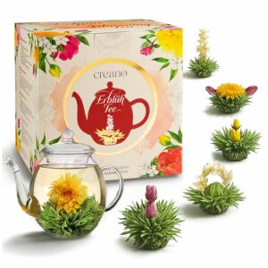 Creano Set Regalo Fiori di Tè - FLOWER DESIGN - Tè Fiorito Raccolta Primaverile con Teiera in Vetro da 500 ml & 6x Tè Bianc…